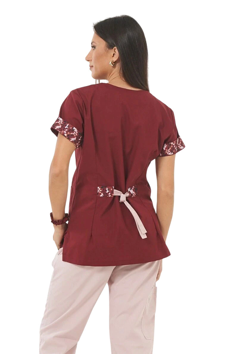 Tela de combinacion estampada en mangas y presillas. en algunos colores se suma un vivo de color contrastante en las mangas.