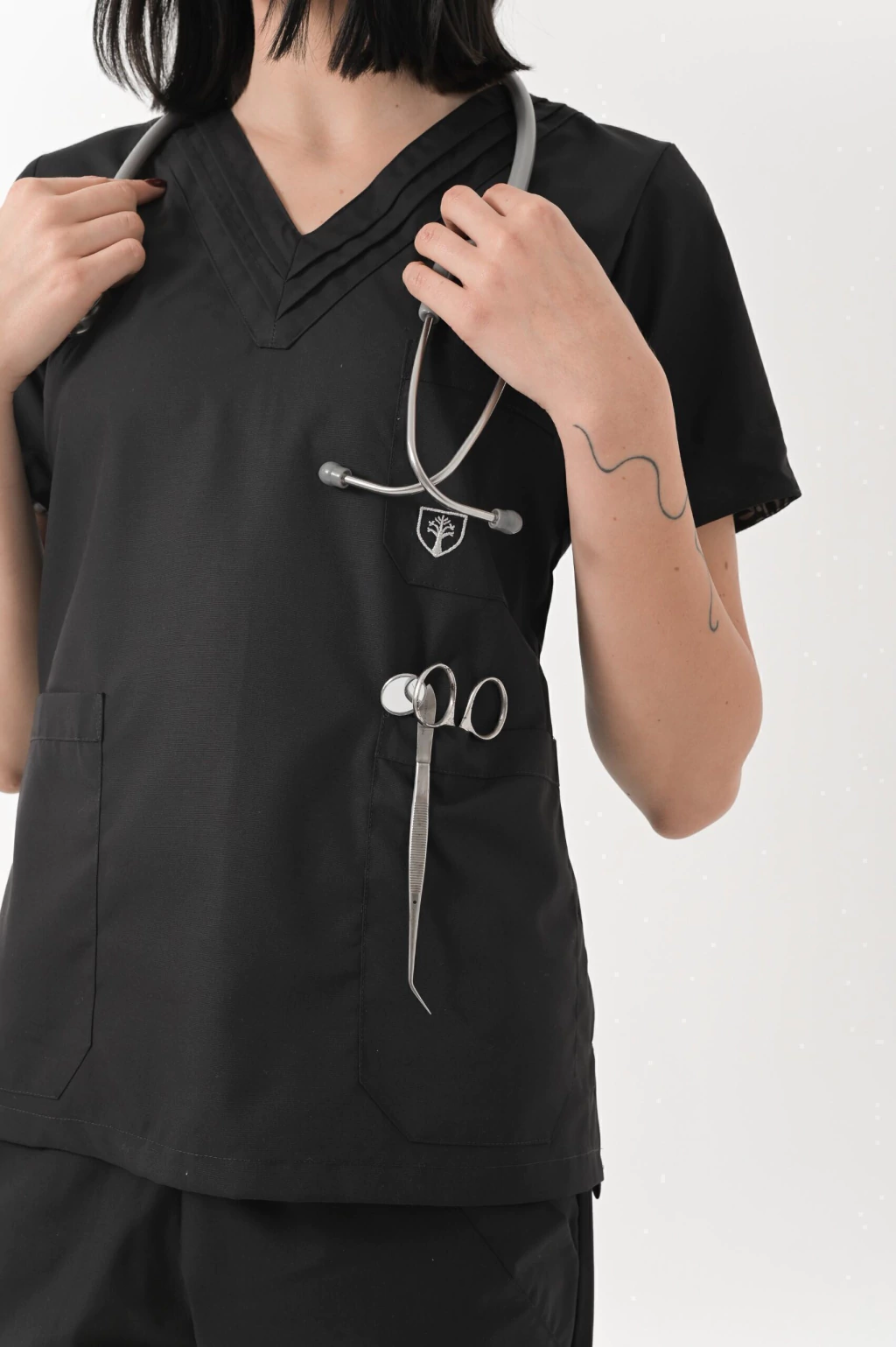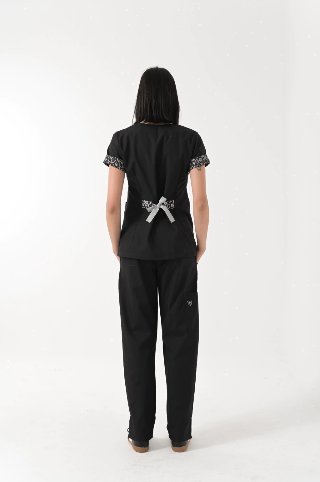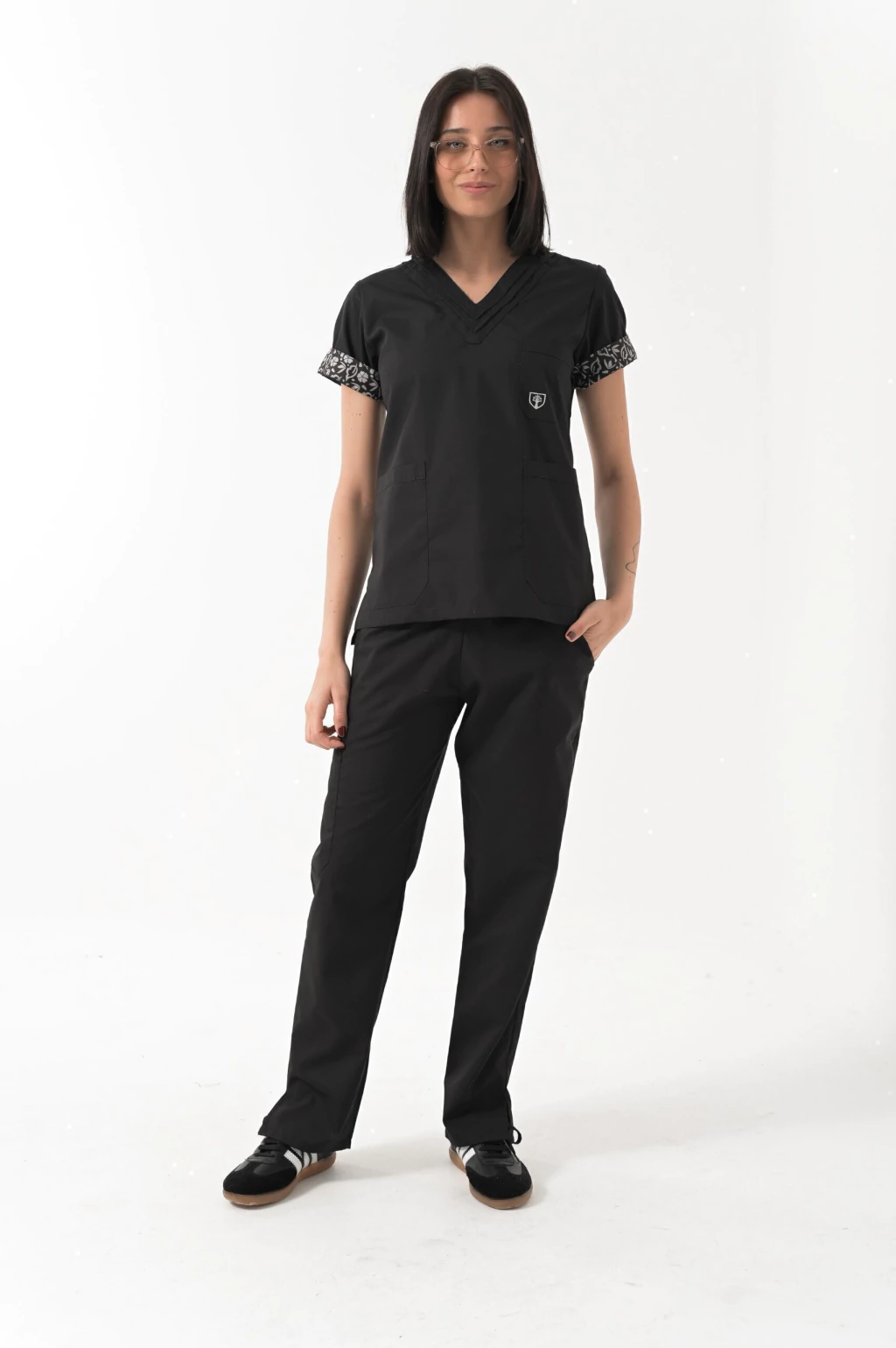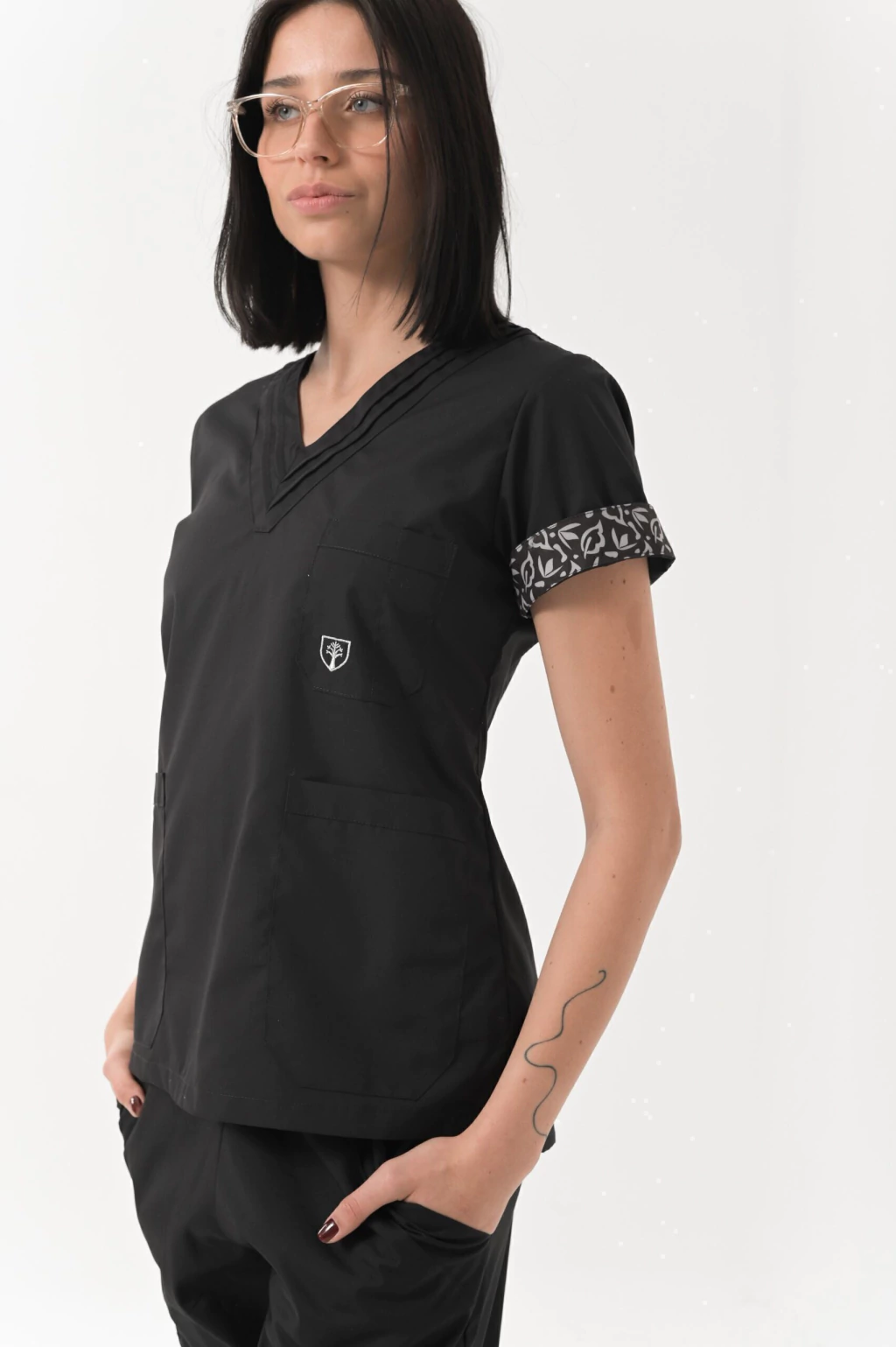 Tela de combinacion estampada en mangas y presillas. en algunos colores se suma un vivo de color contrastante en las mangas.