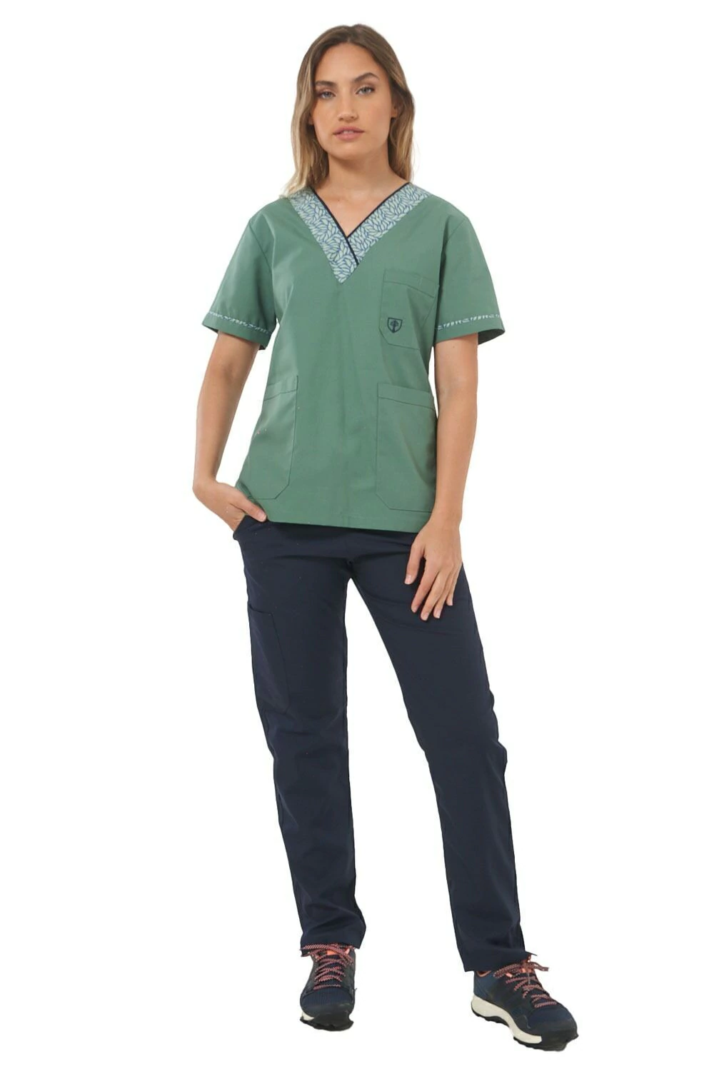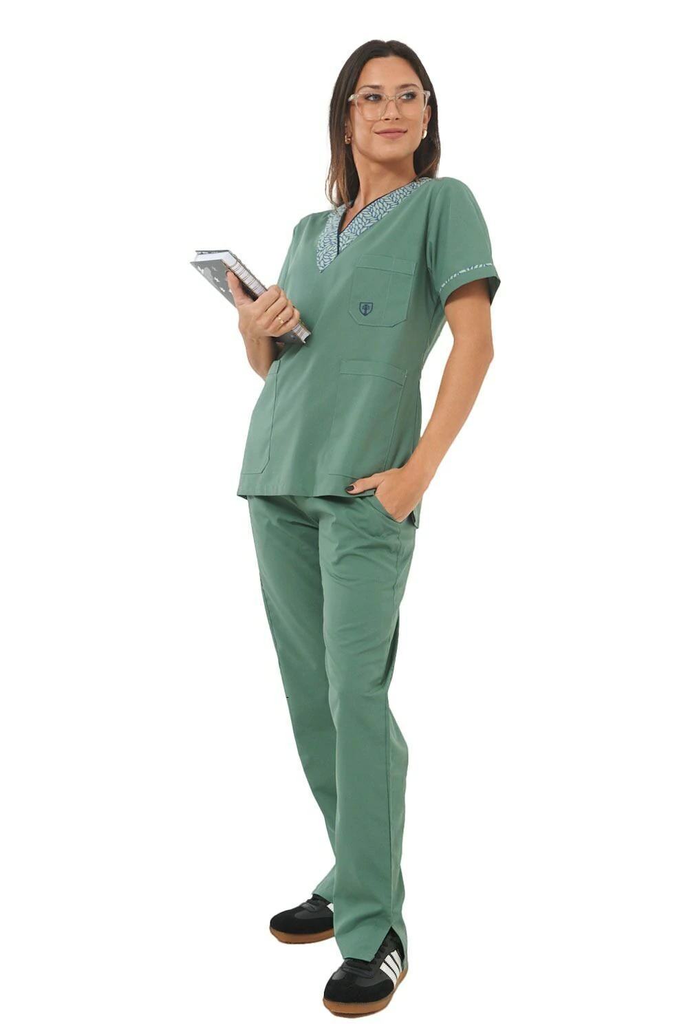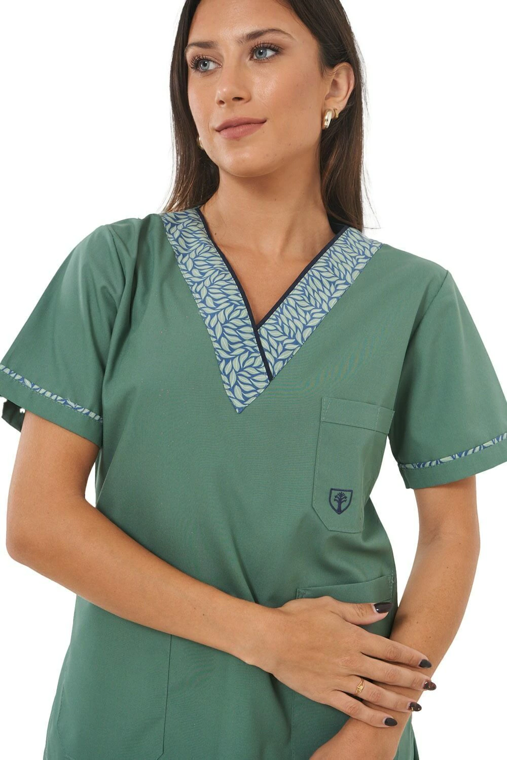 Espalda: tela de combinación con elástico y 2 tiras en tela lisa a manera de eslabón, para marcar la cintura.