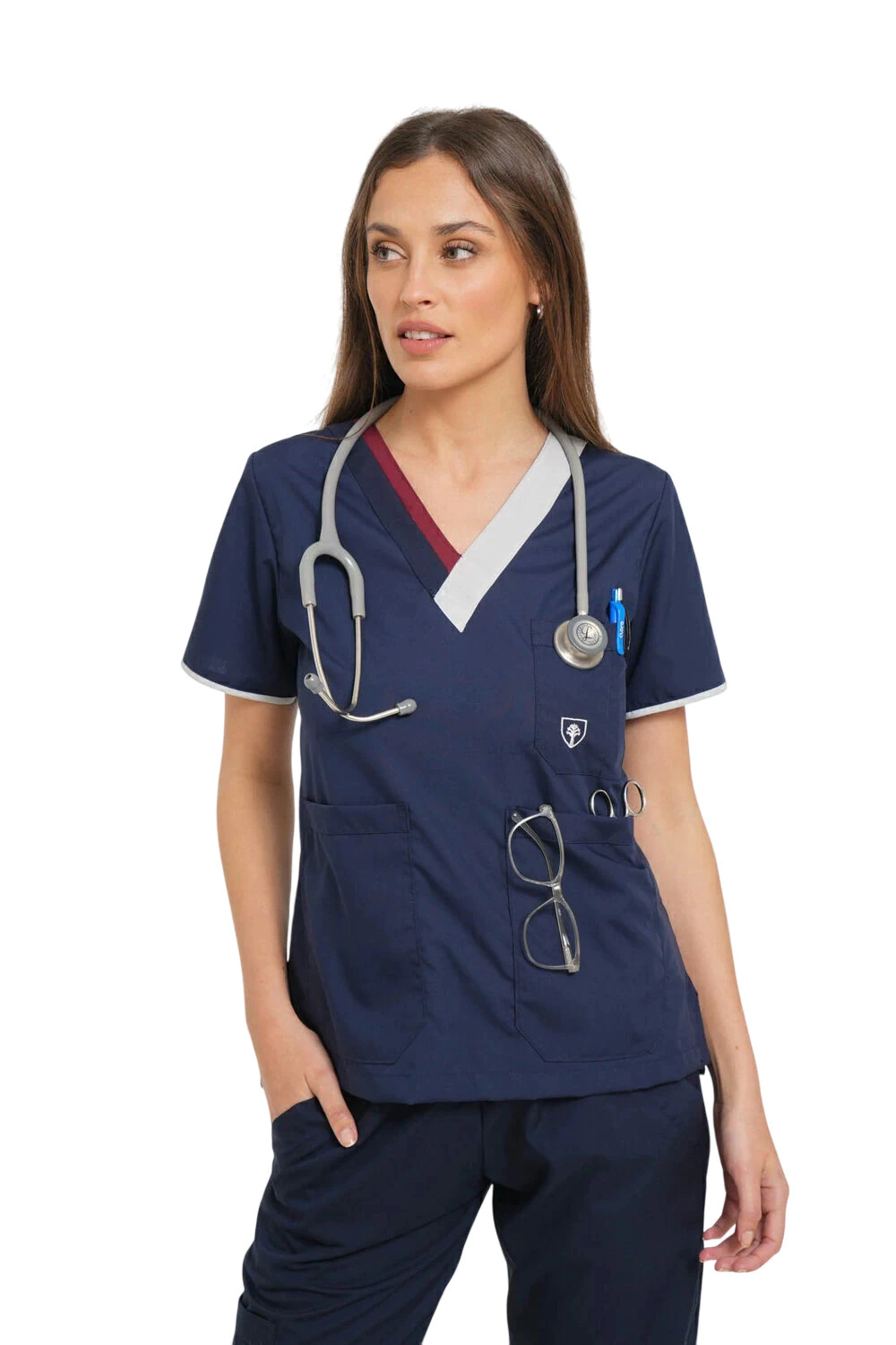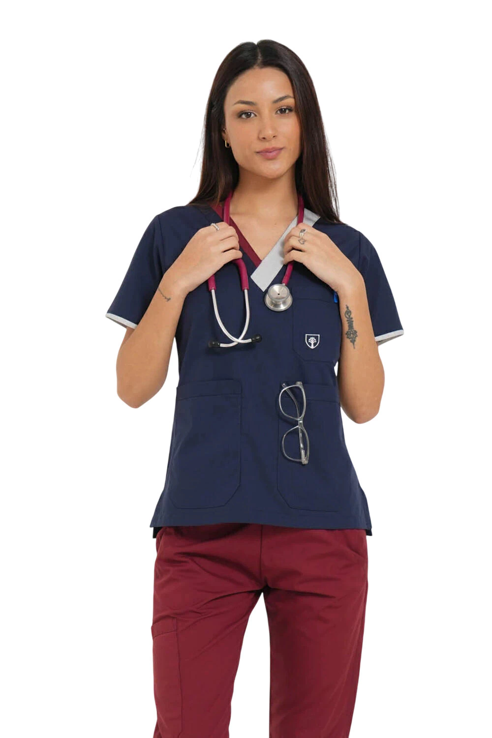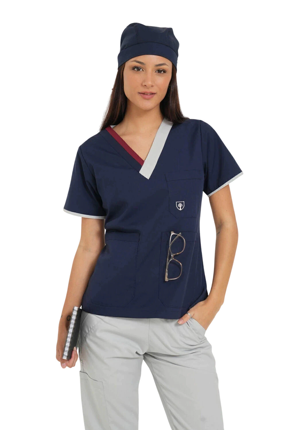 Cuello de tela de combinacion en 2 colores contrastantes para combinar con diferentes colores de pantalones.
