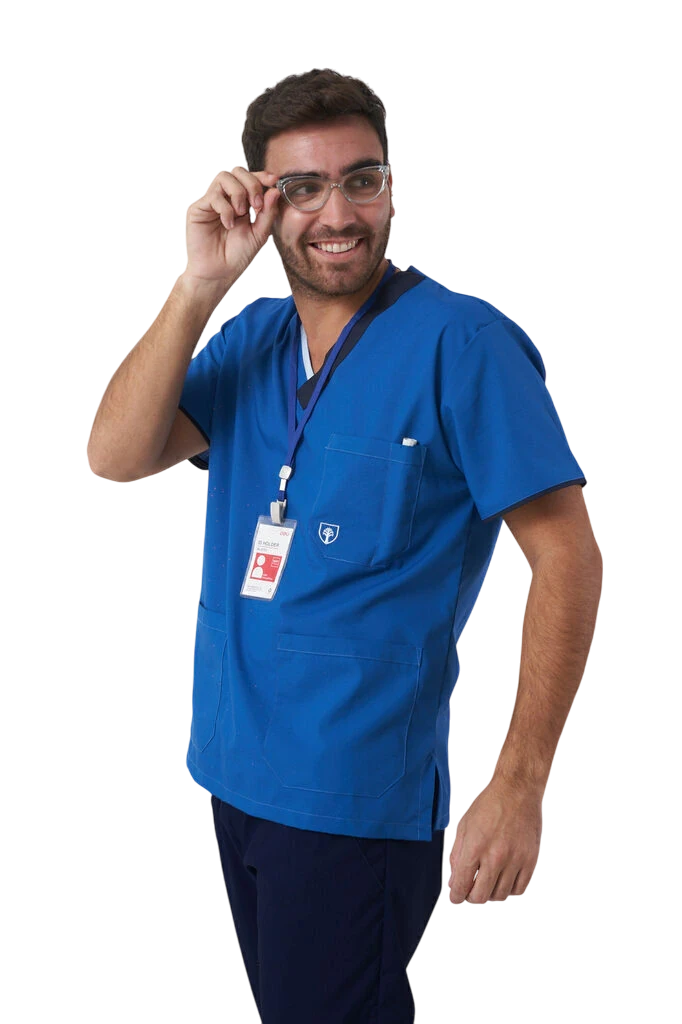 Cuello de tela de combinacion en 2 colores contrastantes para combinar con diferentes colores de pantalones.