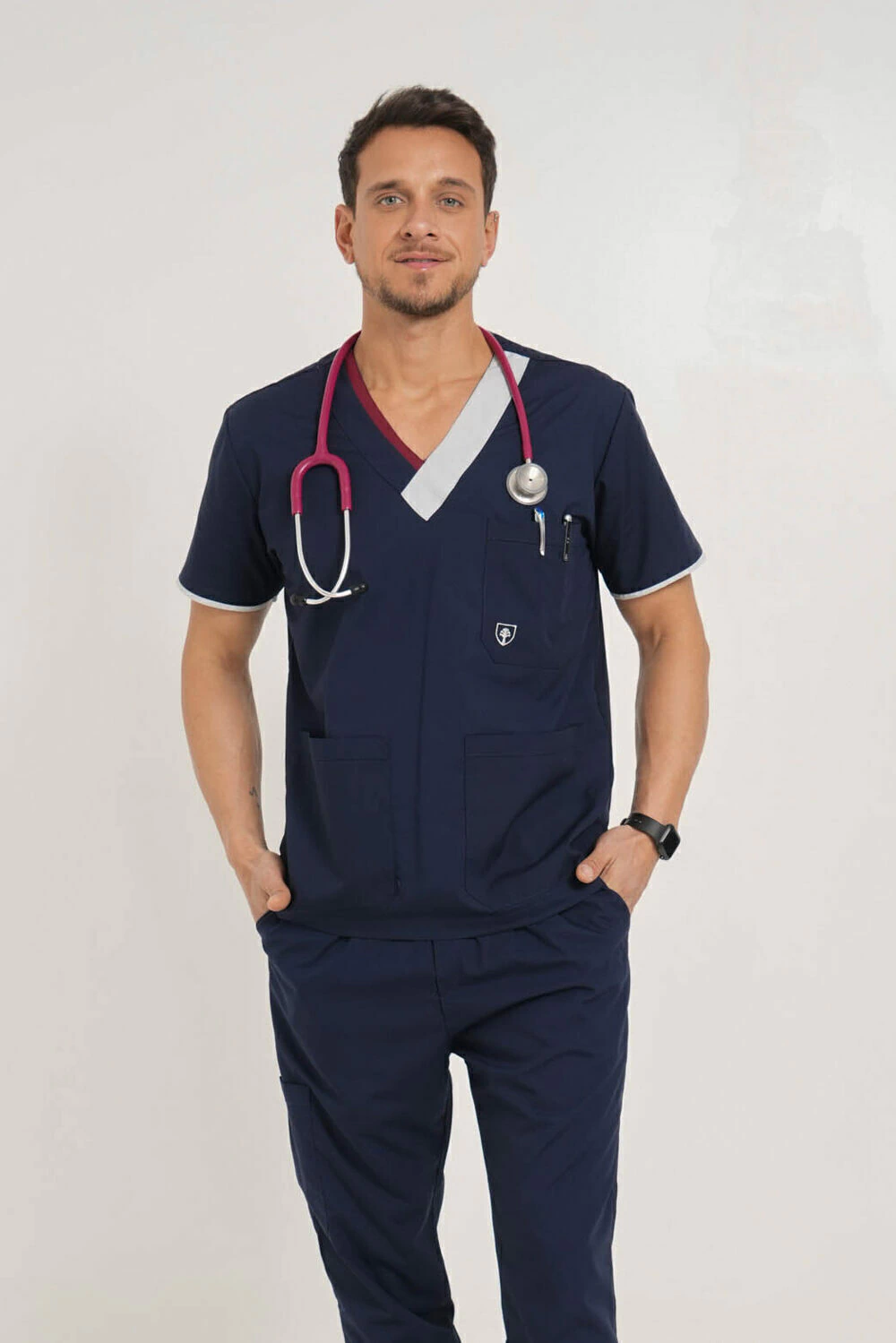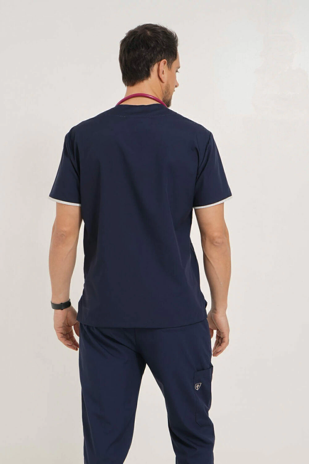 Cuello de tela de combinacion en 2 colores contrastantes para combinar con diferentes colores de pantalones.