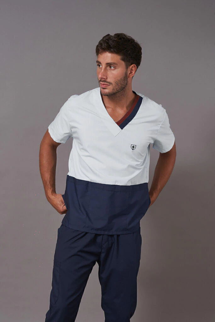 Cuello de tela de combinacion en 2 colores contrastantes para combinar con diferentes colores de pantalones.