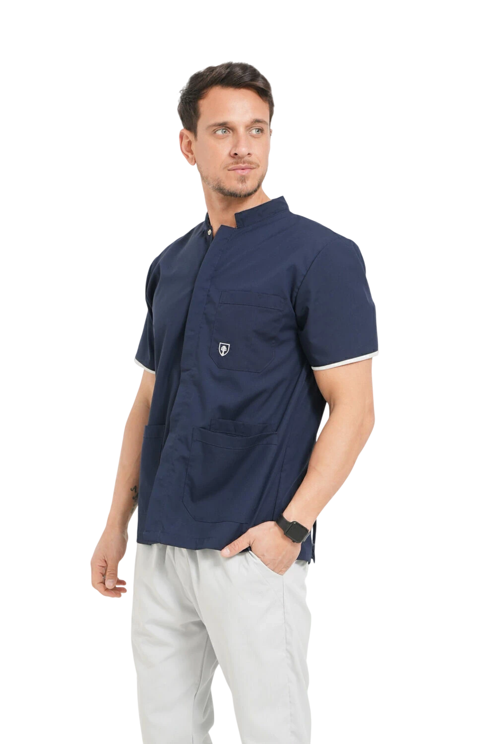 Abierta adelante con broches a presión escondidos. Doble tela de combinación en parte interna de los broches.