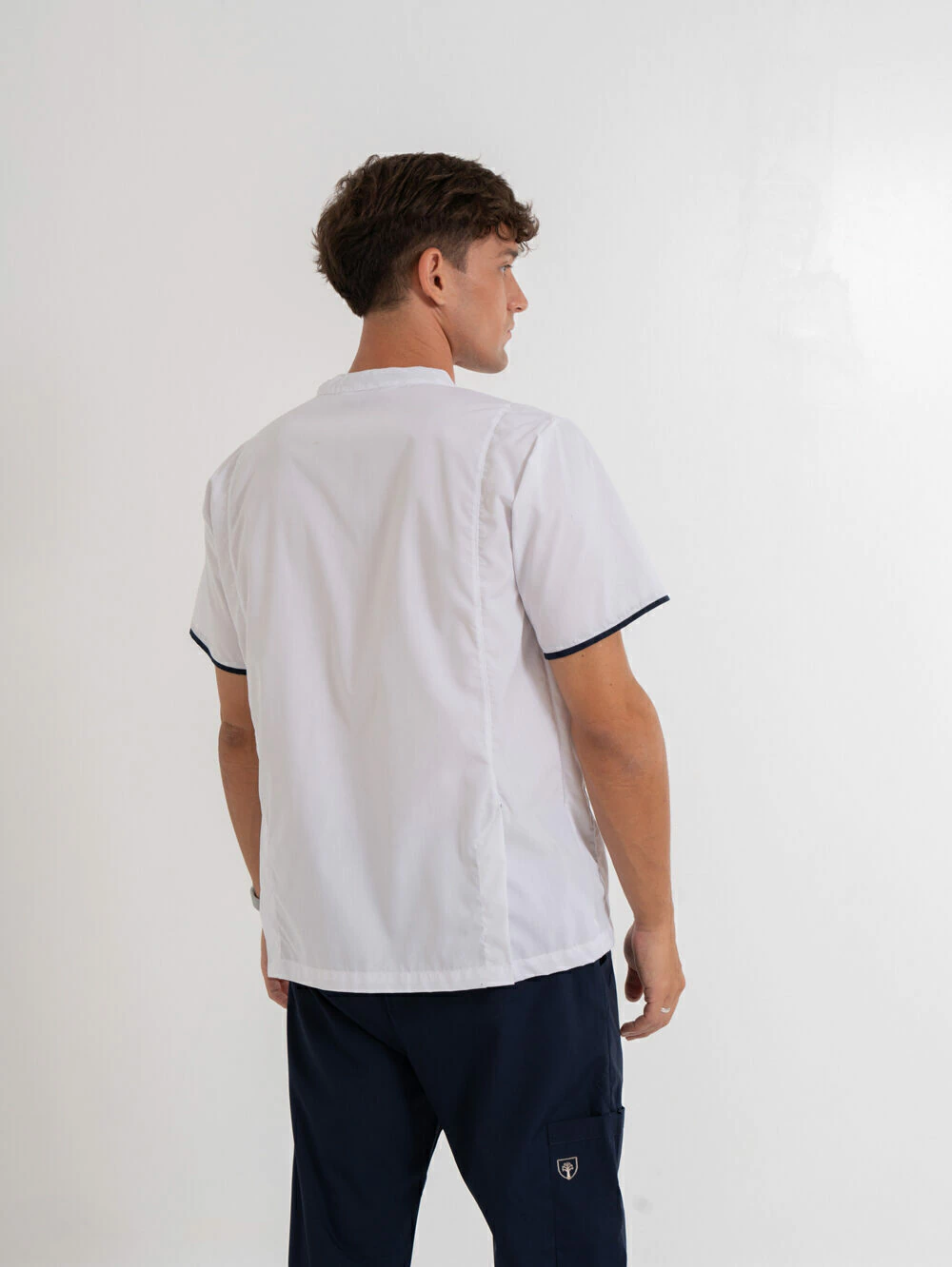 Abierta adelante con broches a presión escondidos. Doble tela de combinación en parte interna de los broches.