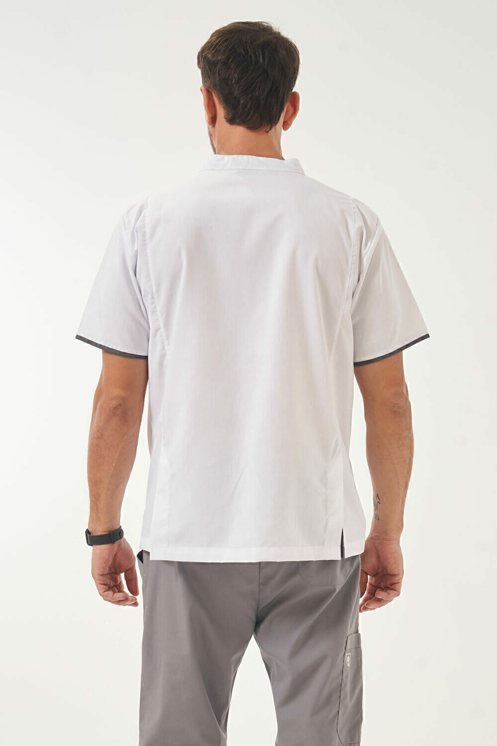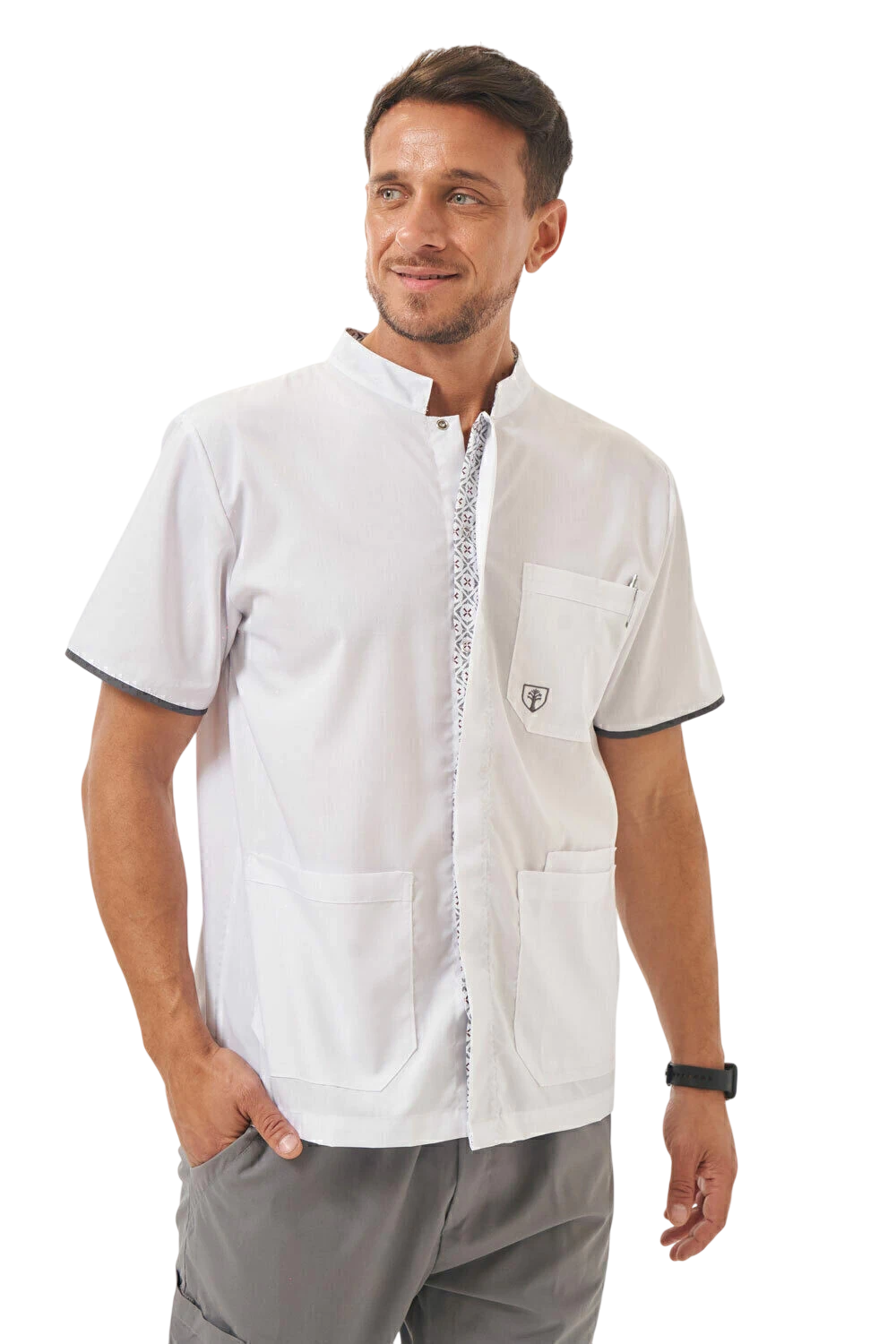 Abierta adelante con broches a presión escondidos. Doble tela de combinación en parte interna de los broches.