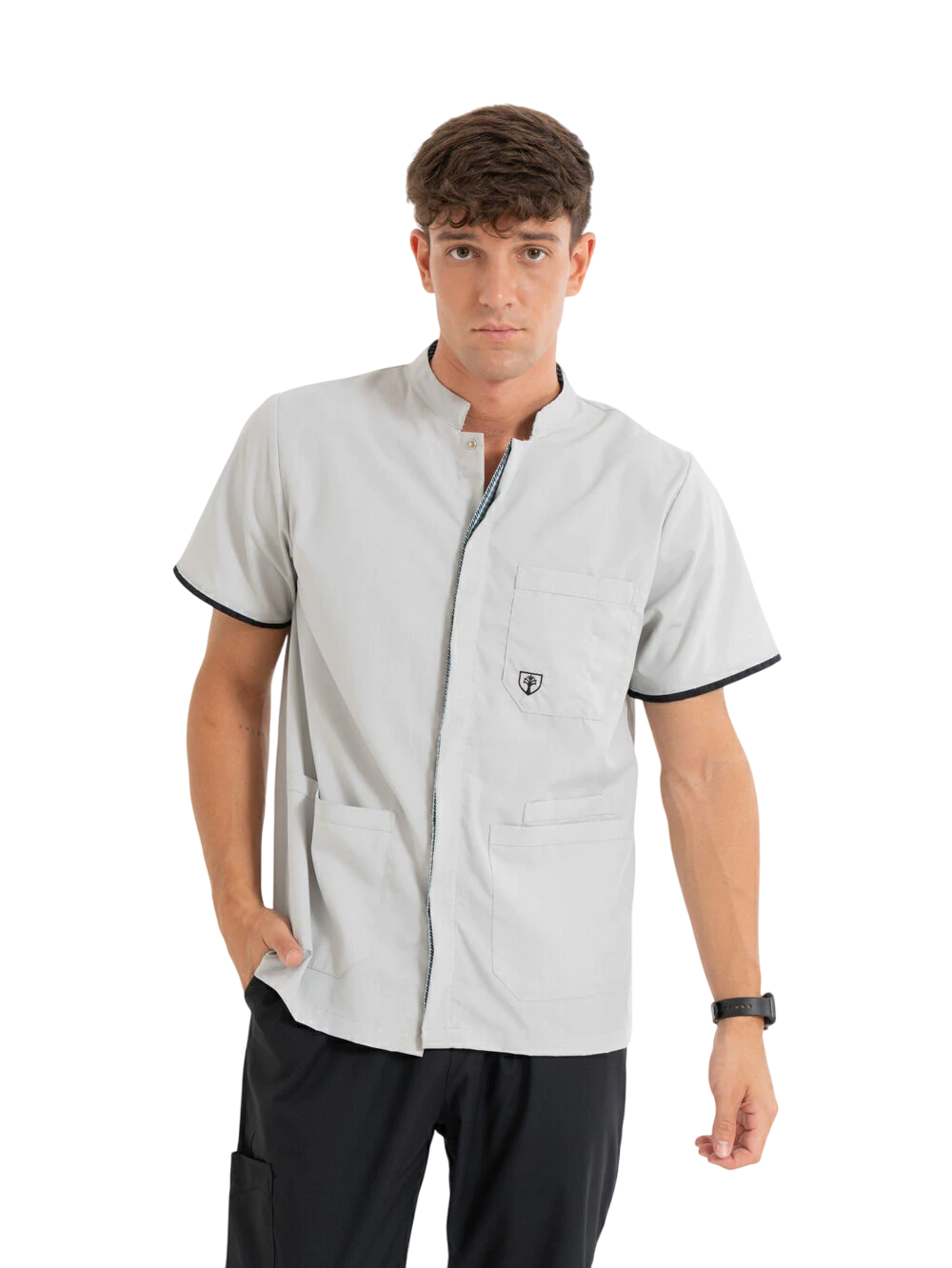 Abierta adelante con broches a presión escondidos. Doble tela de combinación en parte interna de los broches.