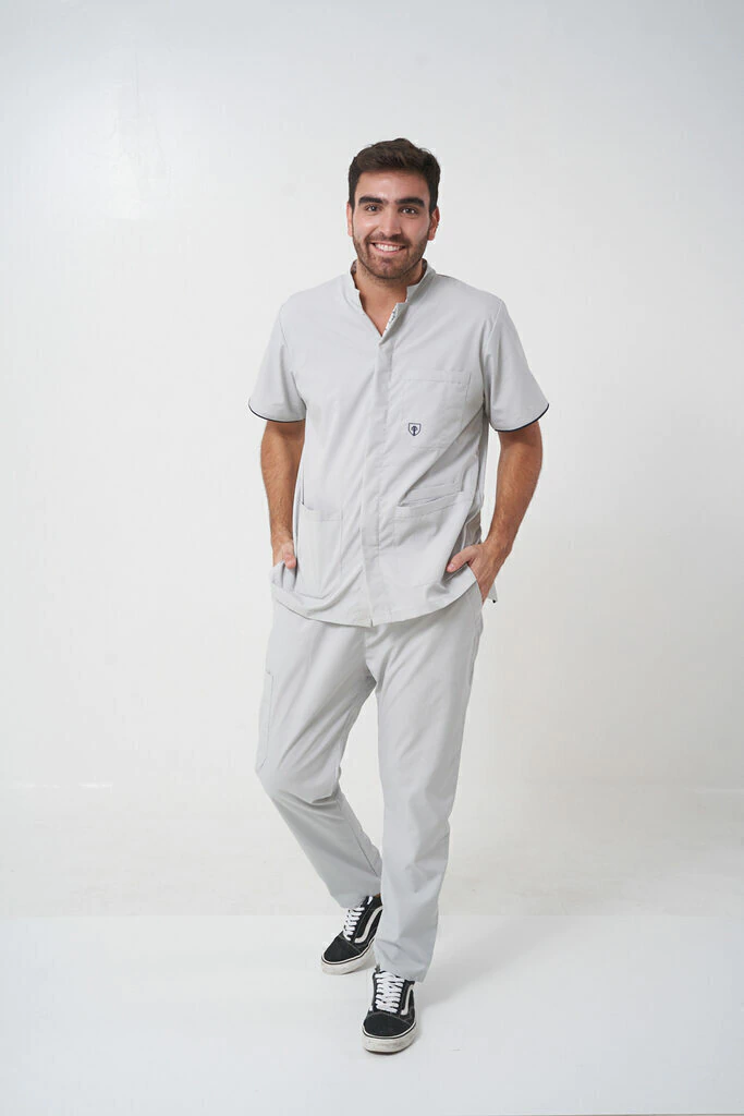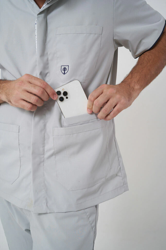 Abierta adelante con broches a presión escondidos. Doble tela de combinación en parte interna de los broches.