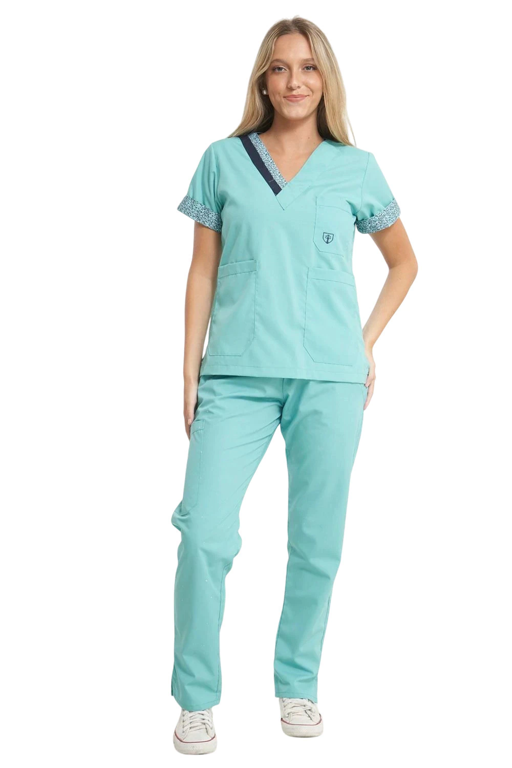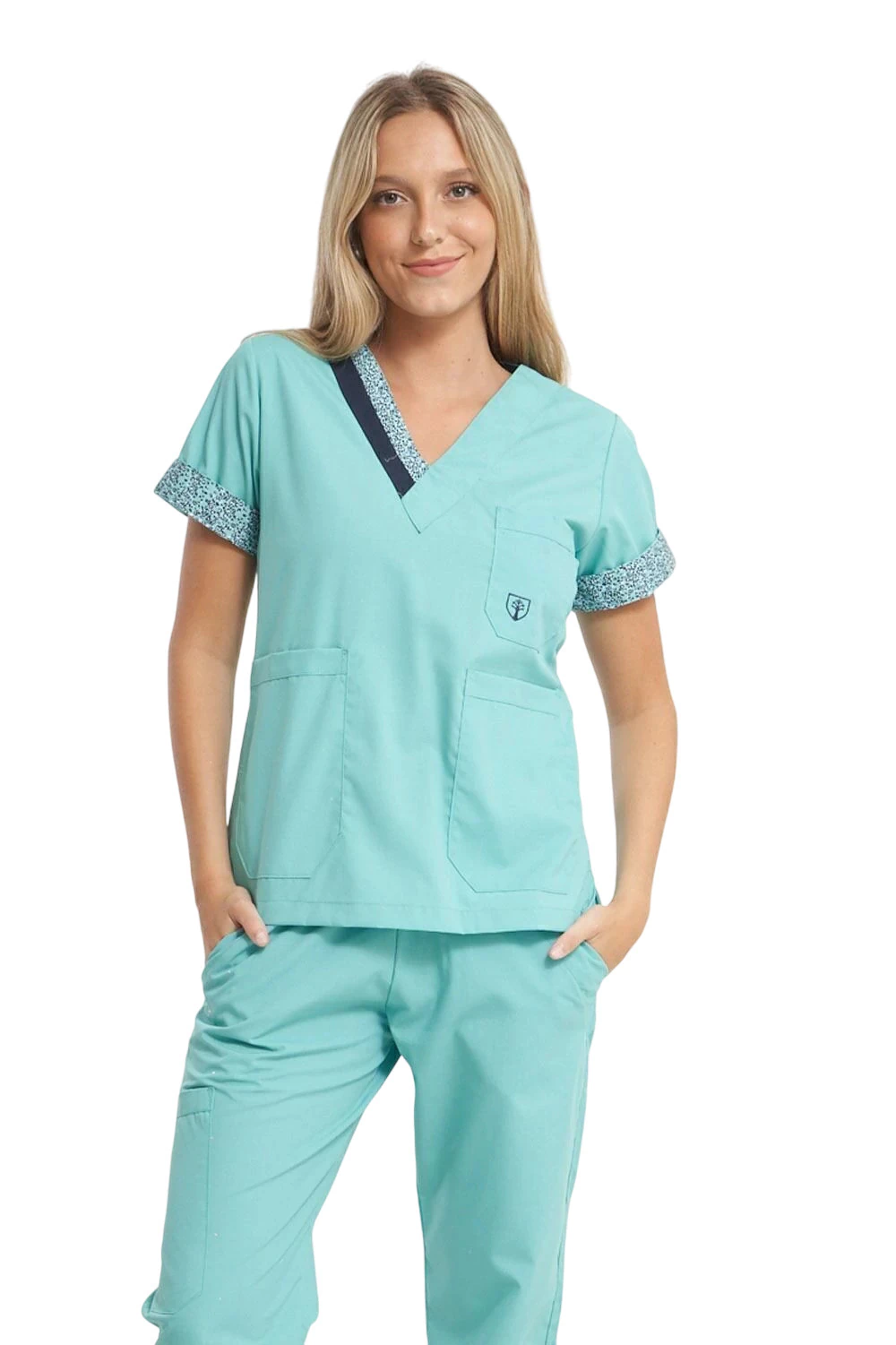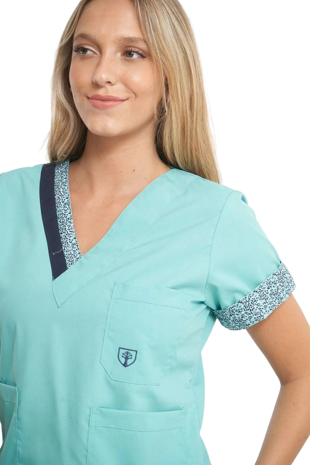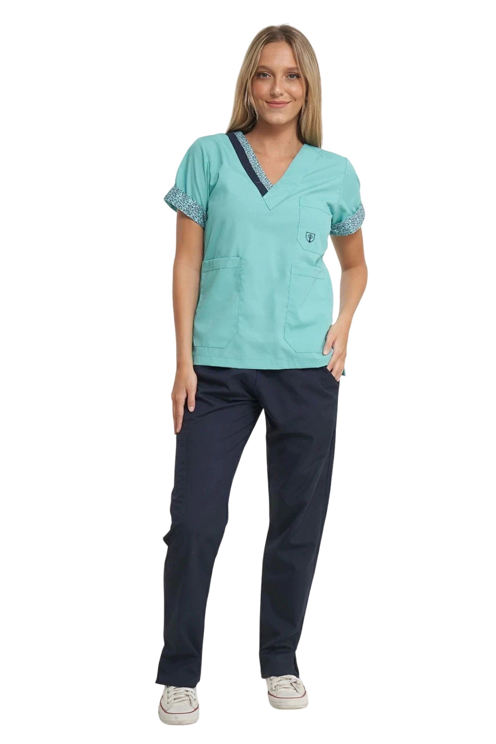 Cuello de tela de combinación en 2 colores contrastantes para combinar con diferentes colores de pantalones.