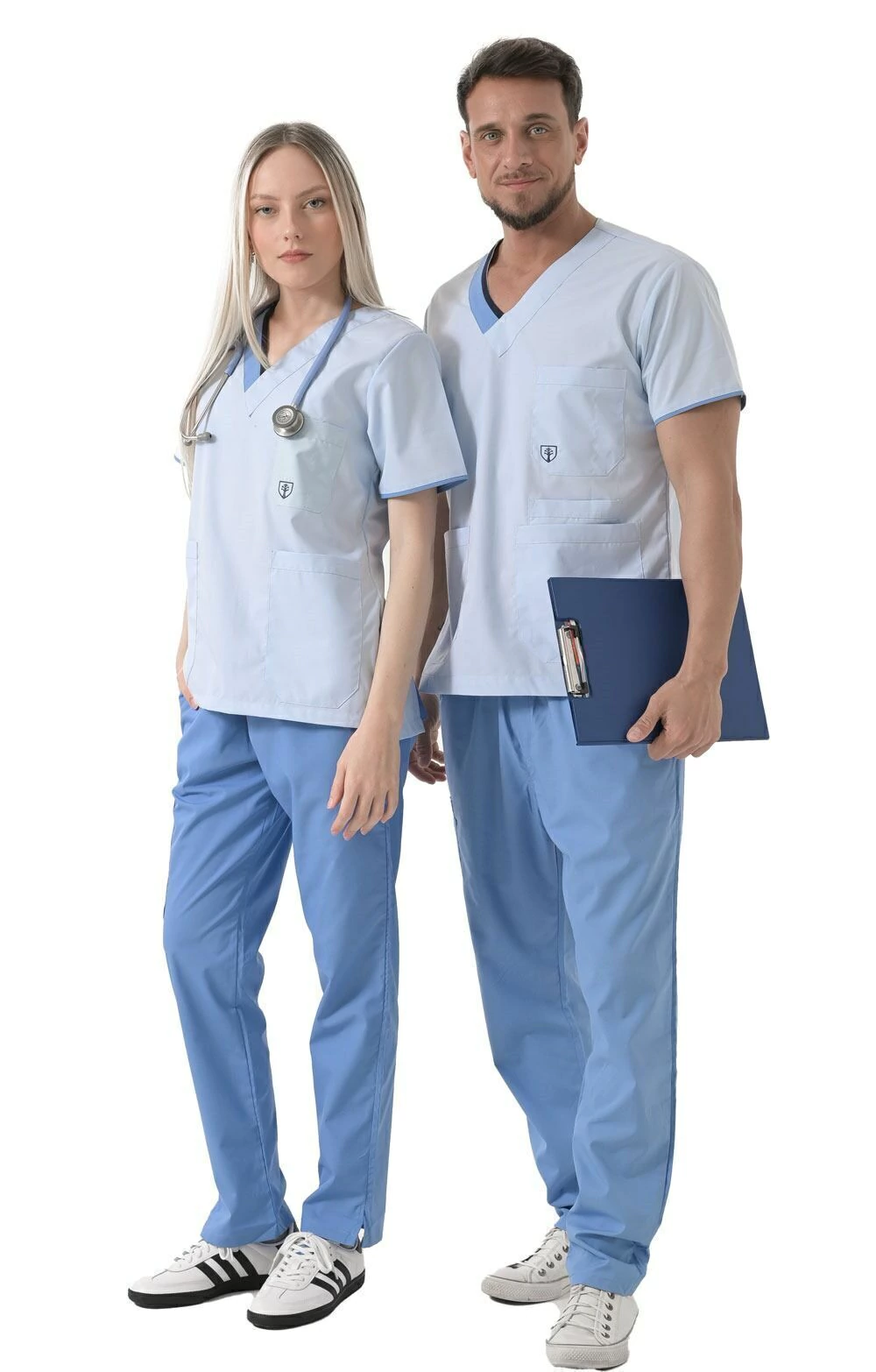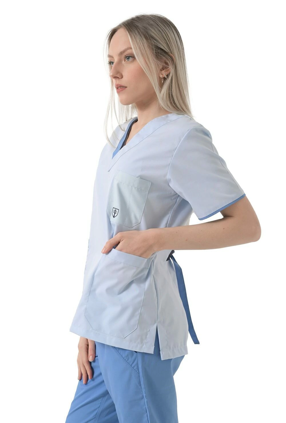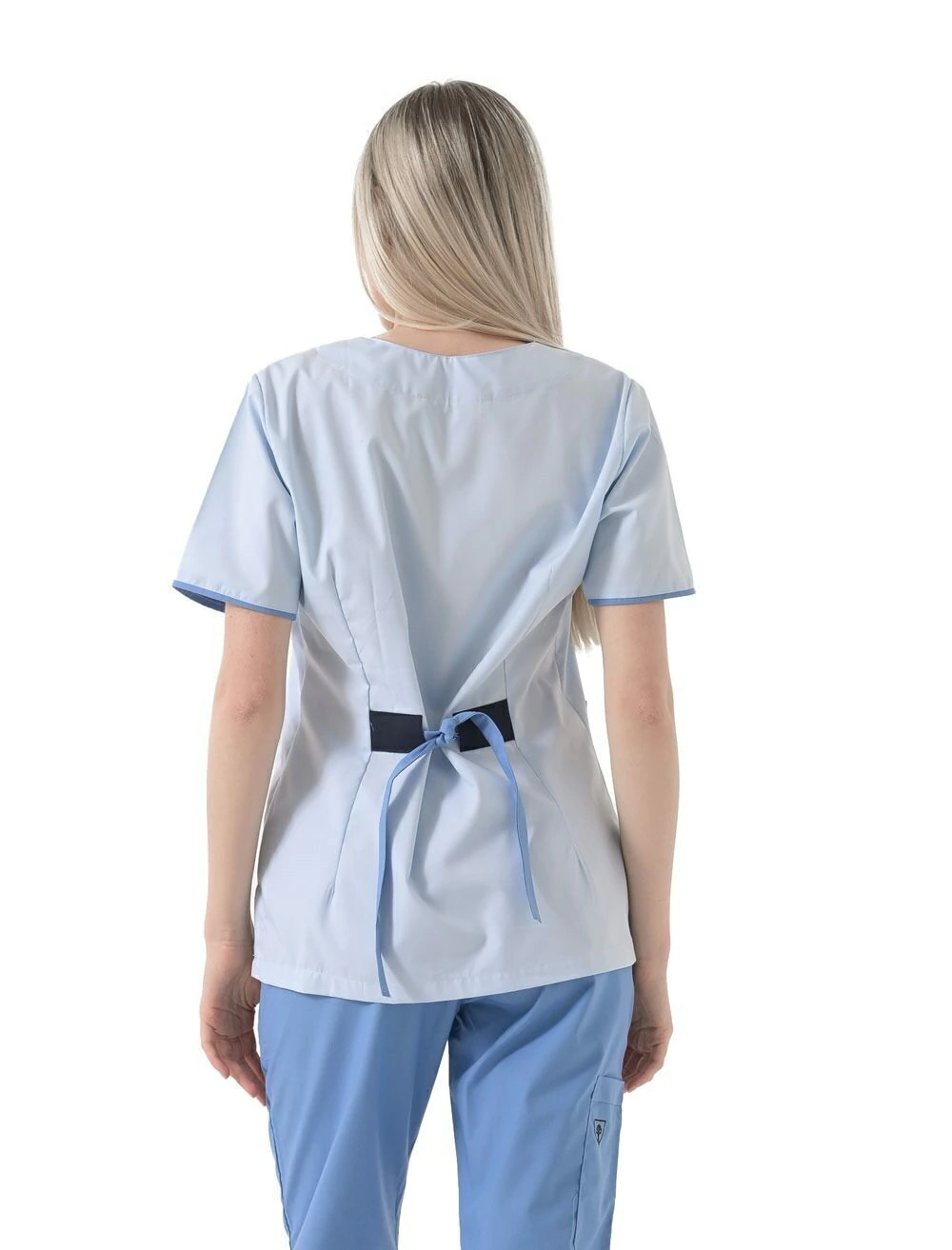 Mangas con vivo en color azulino.