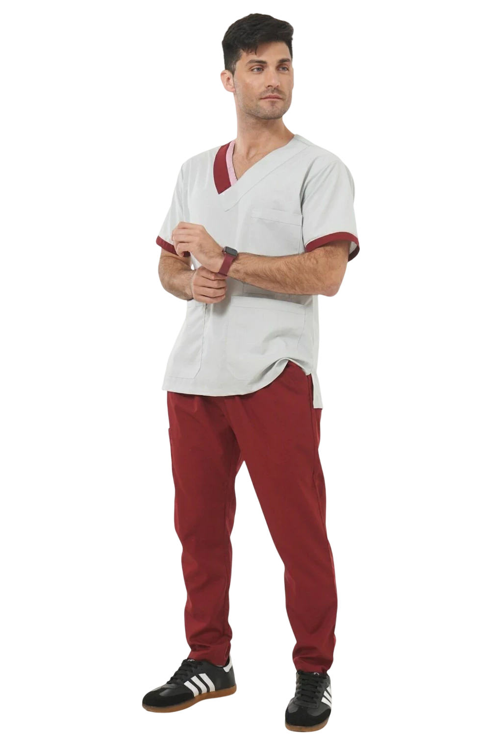 Cuello con tela de combinacion estampada y tela base en sobretono color azulino con presilla para colgar con estampado en combinación.