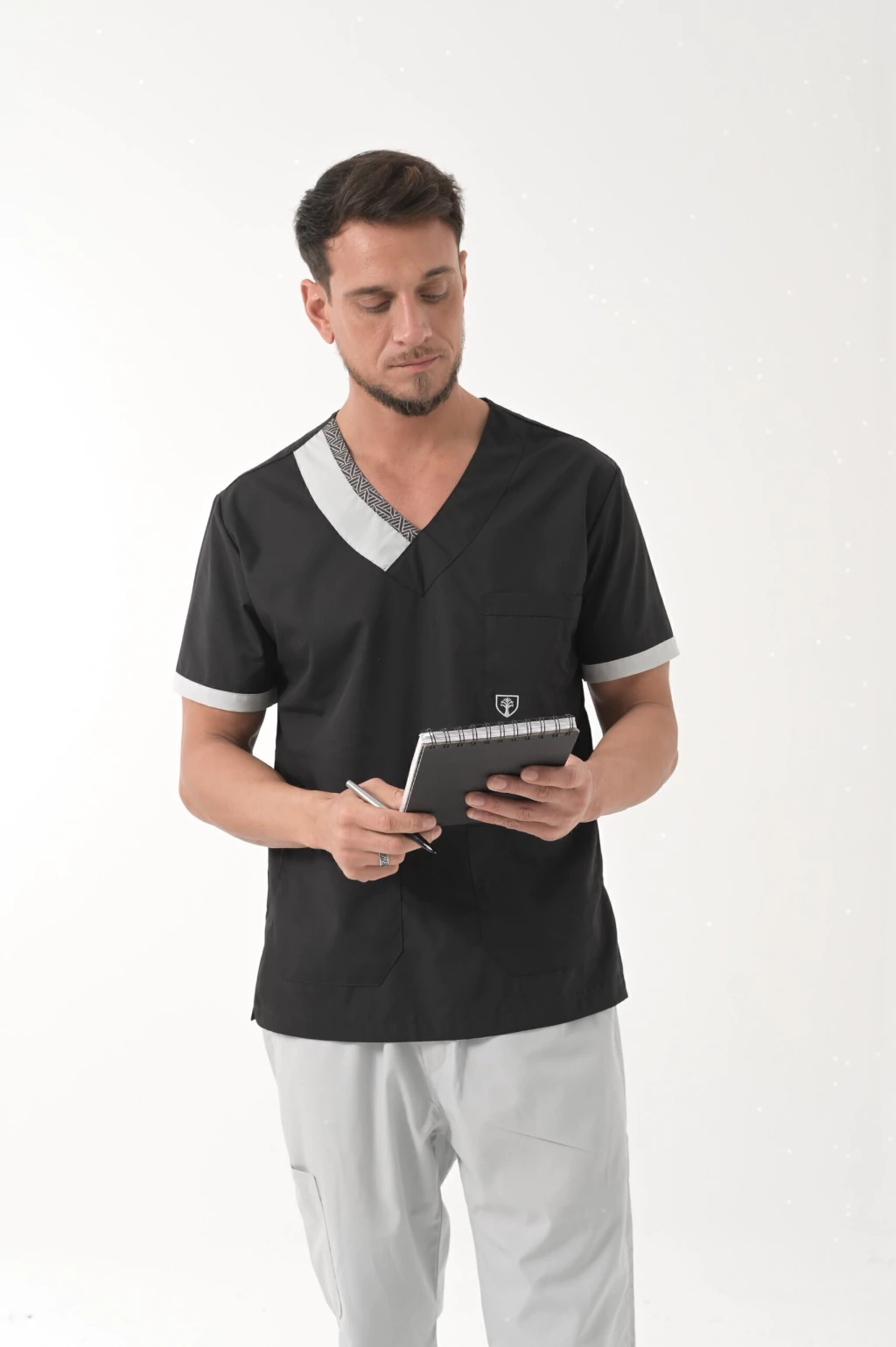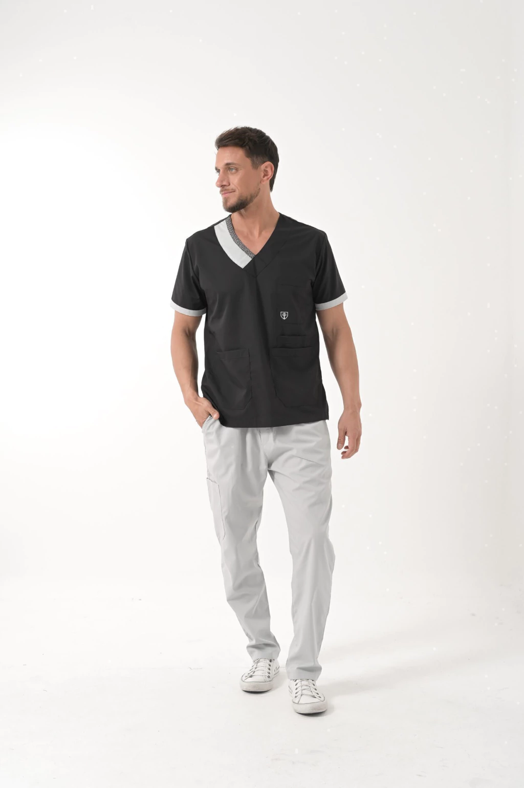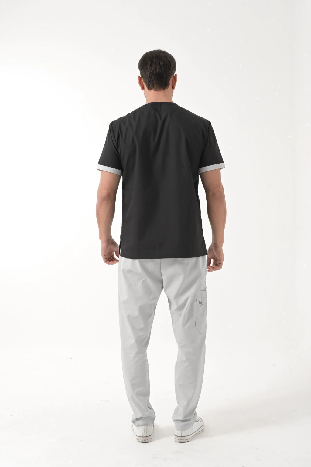 Mangas con vivo en color azulino.