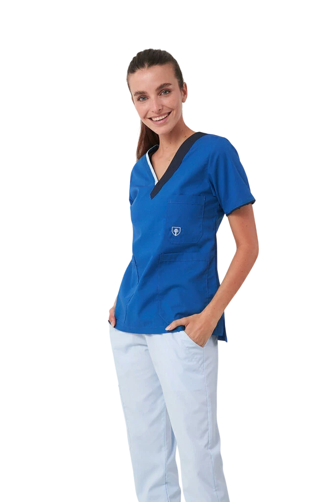 Cuello de tela de combinacion en 2 colores contrastantes para combinar con diferentes colores de pantalones.