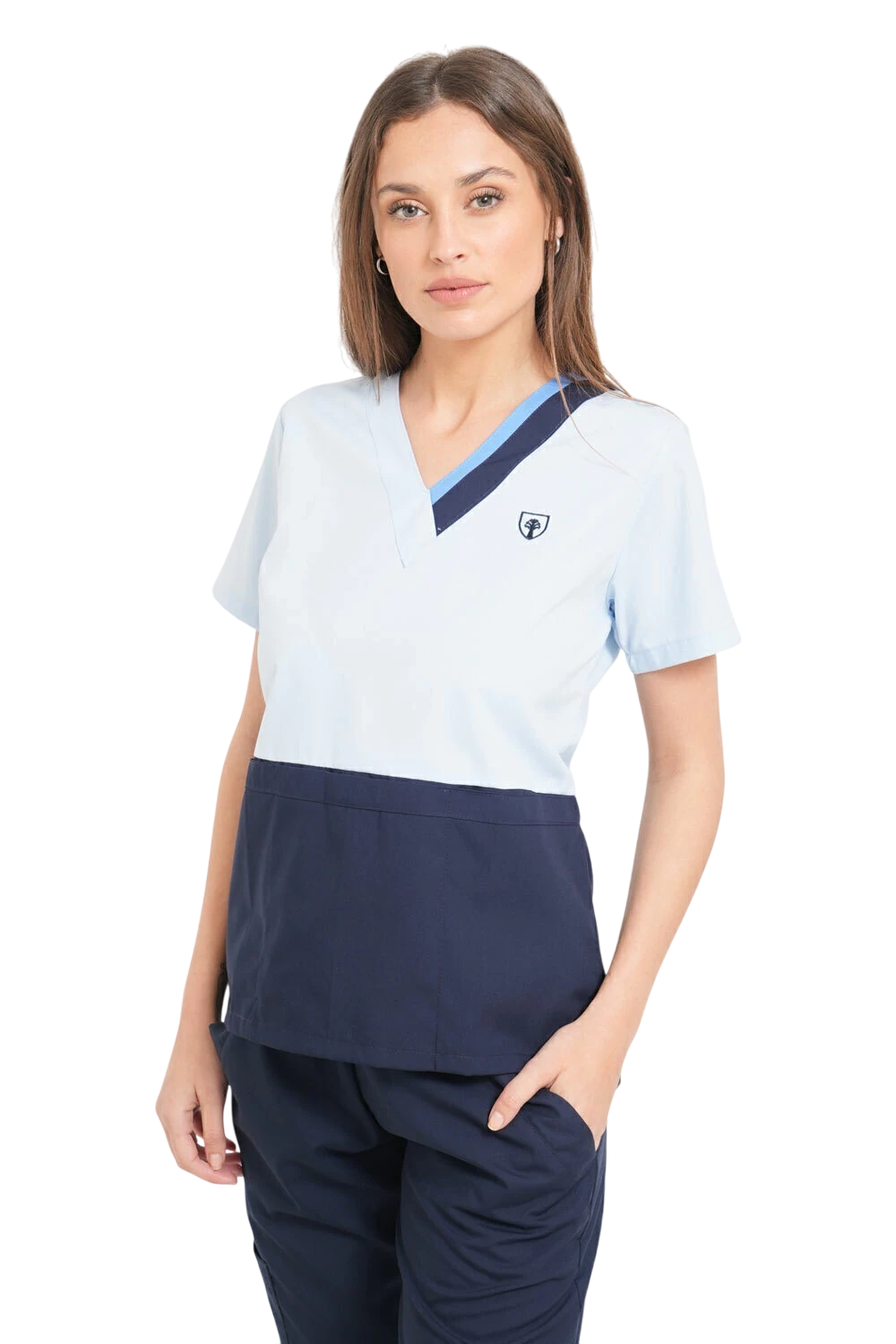 Bolsillo triple ( tipo cheff ) muy amplios y comodos con abrojo en el bolsillo medio ideales para colocar libretas clinicas, estetoscopio o celulares.
