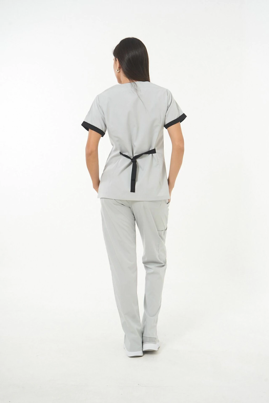 Espalda: tiras para ajustar a tono con el vivo de la manga
