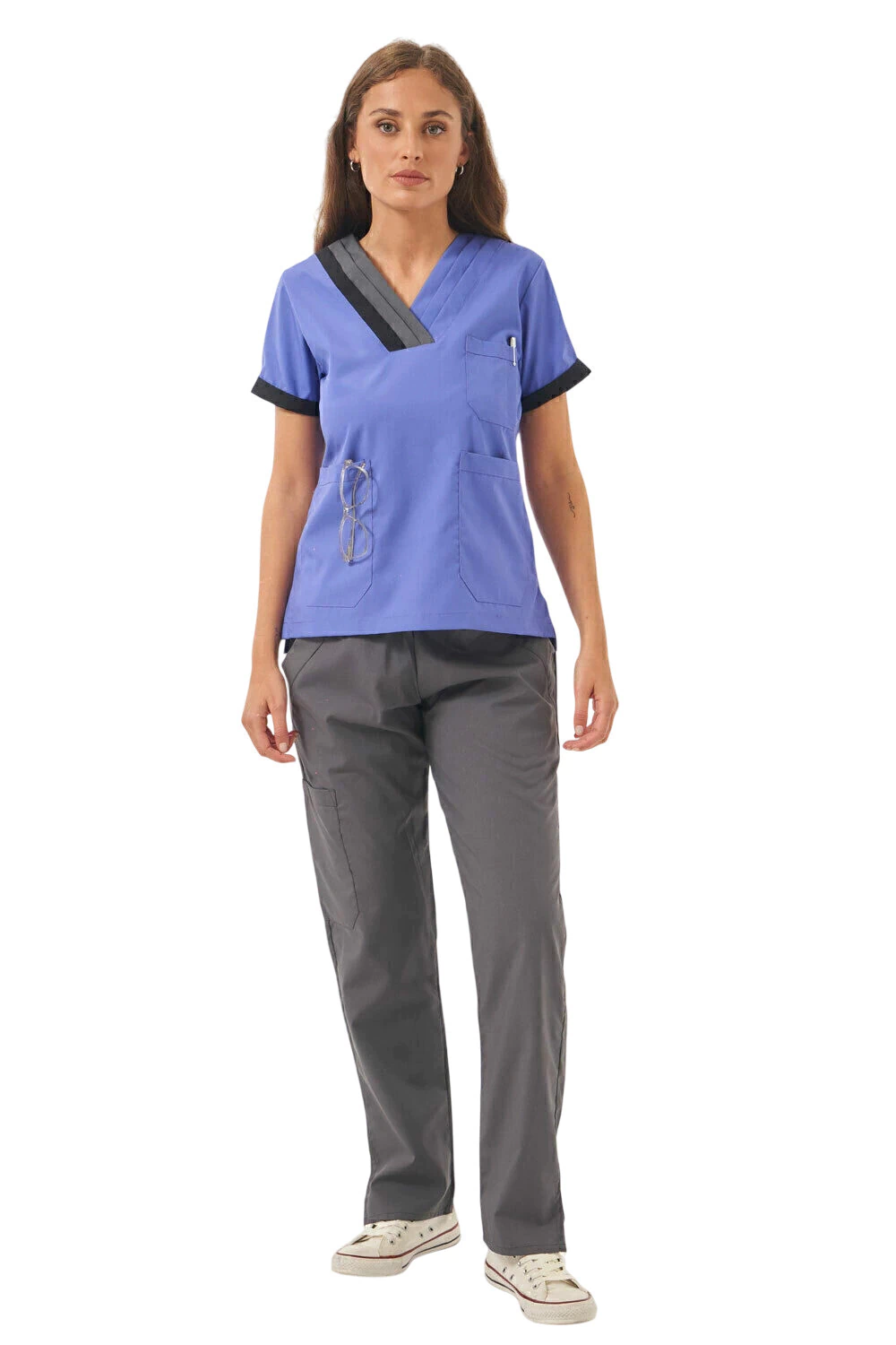 Espalda: tiras para ajustar a tono con el vivo de la manga