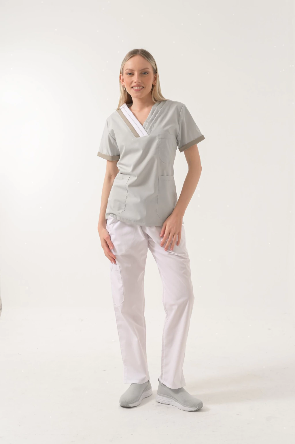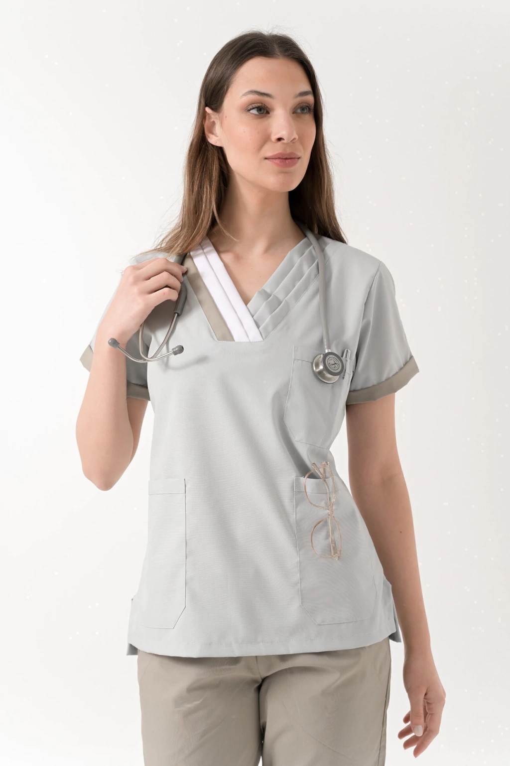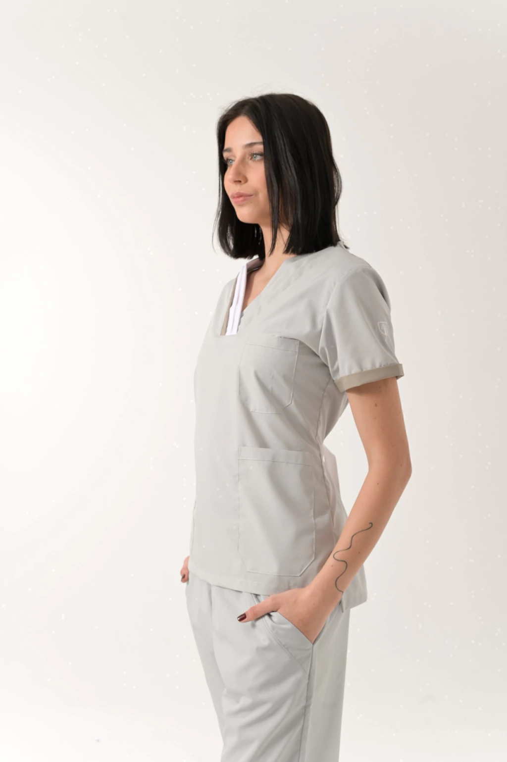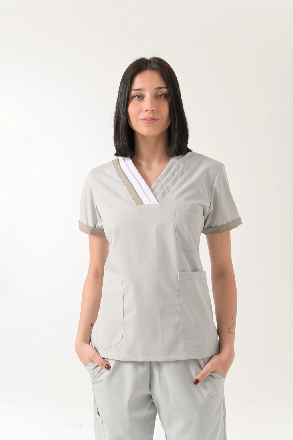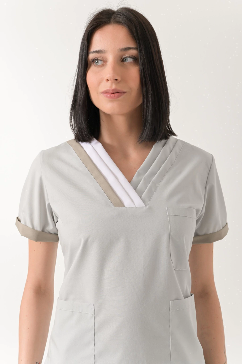 Espalda: tiras para ajustar a tono con el vivo de la manga