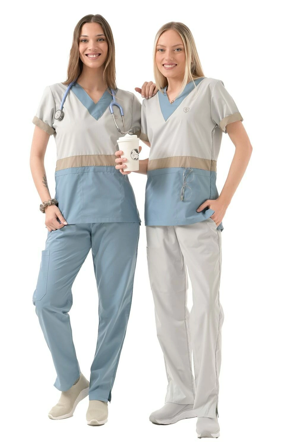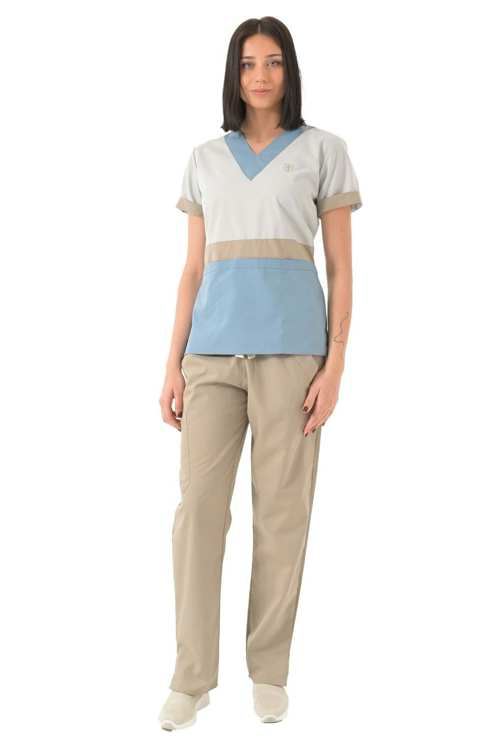 Bolsillo triple frontal ( tipo cheff ) muy amplios y comodos con abrojo en el bolsillo medio ideales para colocar libretas clinicas, estetoscopio o celulares.