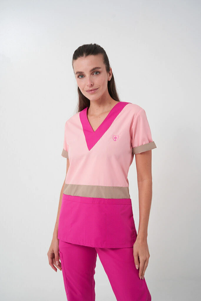 Bolsillo triple frontal ( tipo cheff ) muy amplios y comodos con abrojo en el bolsillo medio ideales para colocar libretas clinicas, estetoscopio o celulares.